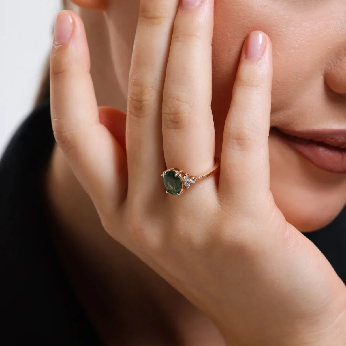 0.65 Karat Pırlantalı Yeşil Turmalin Yüzük - ANTY0004